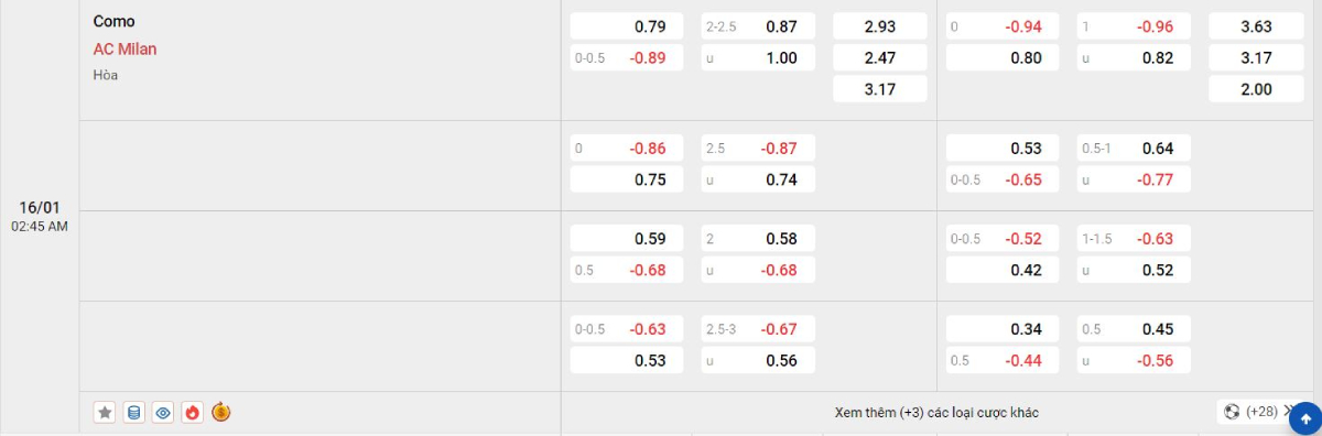 - Hiệp 1: Como 0 – 0 AC Milan