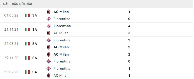 Lịch sử đối đầu của Milan vs Fiorentina