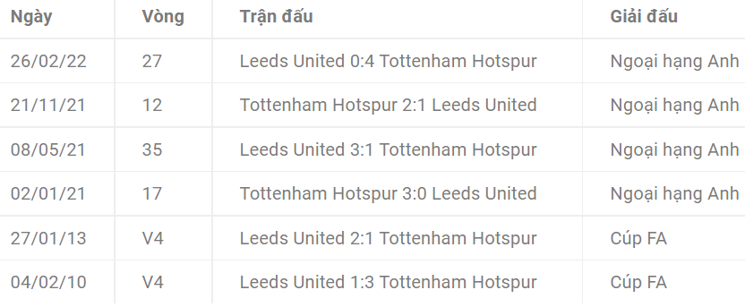 Lịch sử đối đầu của Totteham Hotspur vs Leeds United