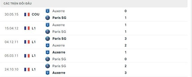 Lịch sử đối đầu của Paris Saint-Germain vs Auxerre