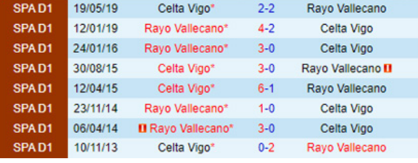 Lịch sử đối đầu của Rayo Vallecano vs Celta Vigo