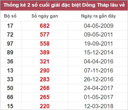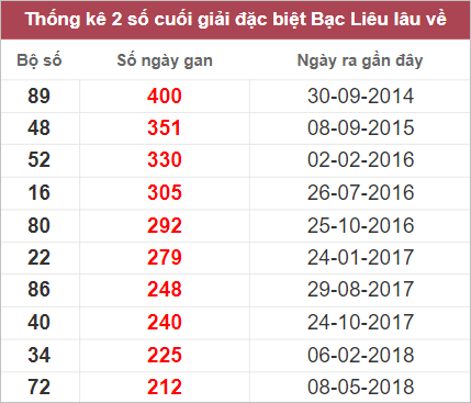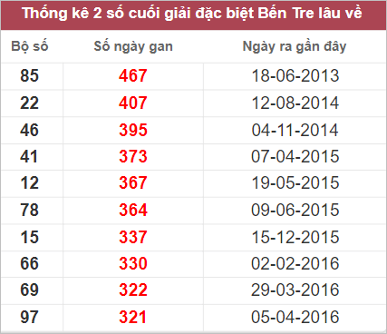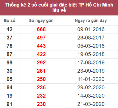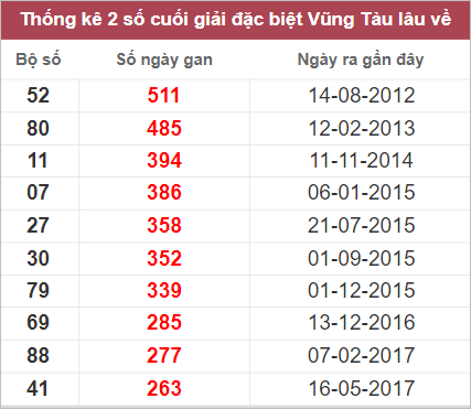 Bảng thống kê những cặp số lâu không xuất hiện nhất