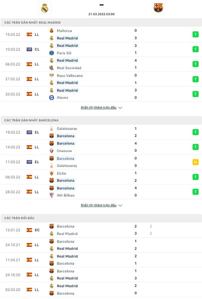 • Cả trận: Real Madrid 2 – 1 Barcelona