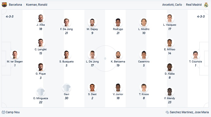 Nếu tính cả hiệp phụ trong các trận đấu cúp, Barca đã thua trong cả 5 trận El Clasico gần đây trước kình địch Real Madrid. Trong đó, ở trận lượt đi tại La Liga mùa này, ngay trên sân Camp Nou, đội bóng xứ Catalunya mất trắng 3 điểm với kết quả thua 1-2. Hôm ấy, đội bóng của HLV Carlo Ancelotti đã chơi ép sân từ đầu đến cuối và vượt lên dẫn 2 bàn nhờ các pha  lập công của David Alaba và Lucas Vazquez, còn người ghi bàn gỡ danh dự cho đội chủ nhà ở phút bù giờ cuối cùng là Sergio Aguero.