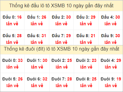 Bảng thống kê những con số thường xuyên xuất hiện gần đây