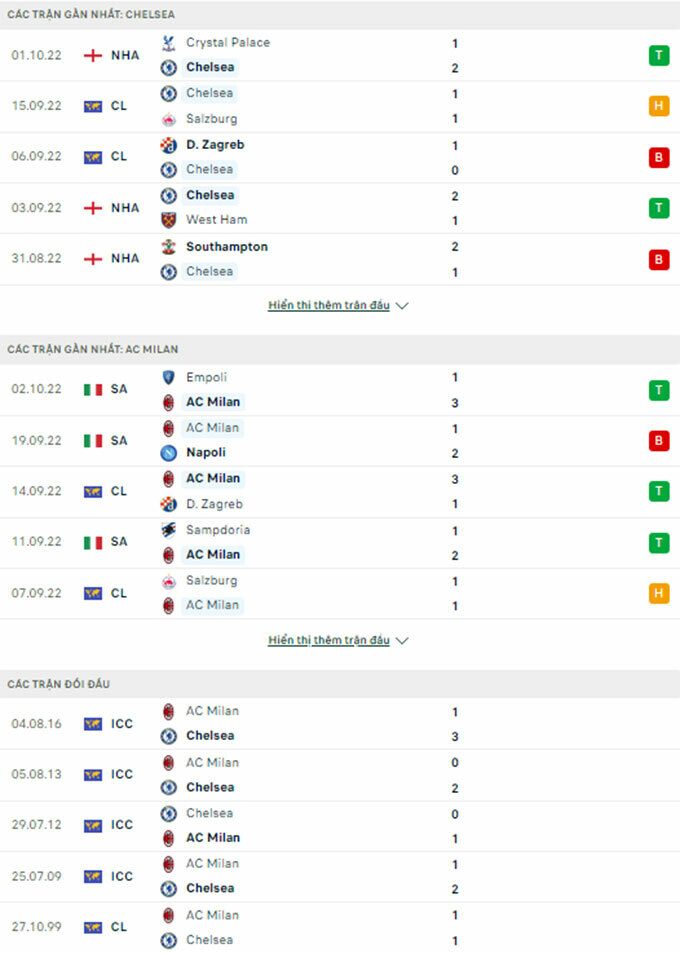 Lịch sử thi đấu và đối đầu của Milan vs Chelsea
