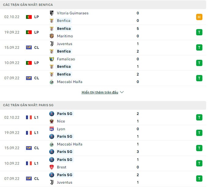 Phong độ gần đây và lịch sử đối đầu của PSG vs Benfica