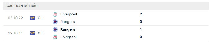 Lịch sử đối đầu của Rangers vs Liverpool