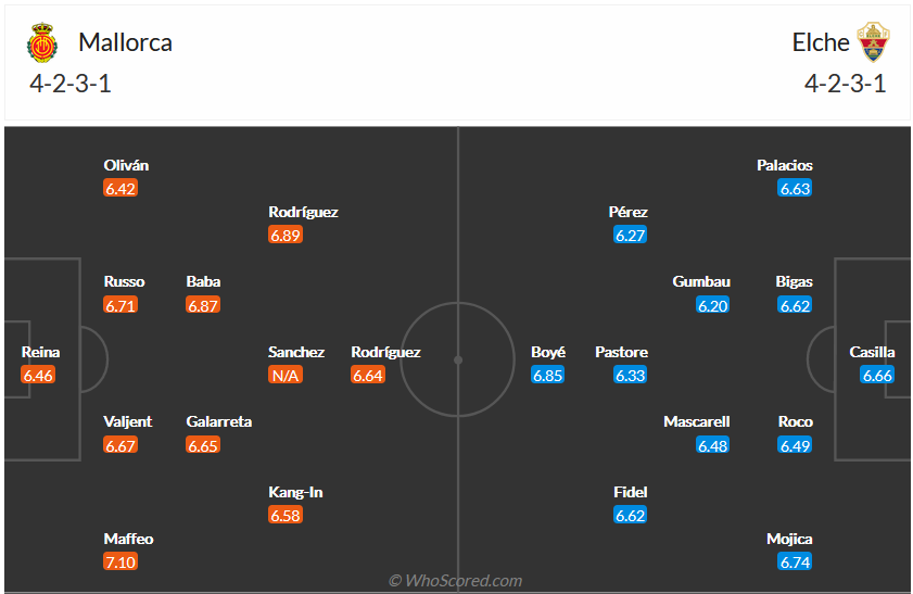 • Cả trận: Elche CF 0 – 1 RCD Mallorca