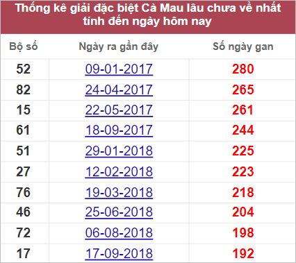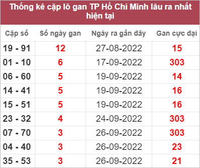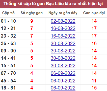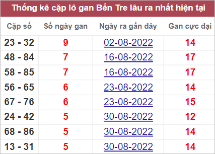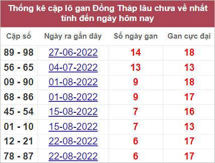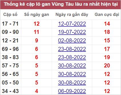 Bảng thống kê những cặp số lâu không xuất hiện nhất