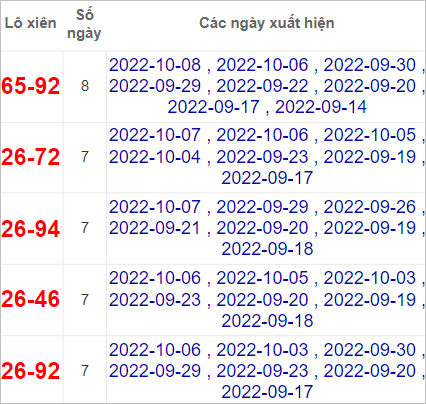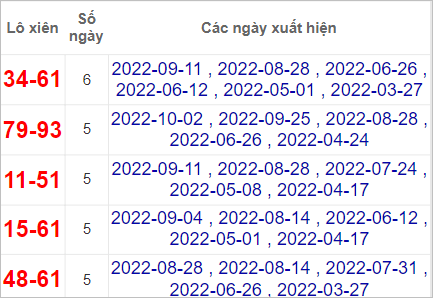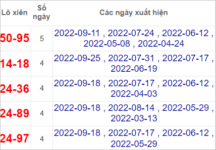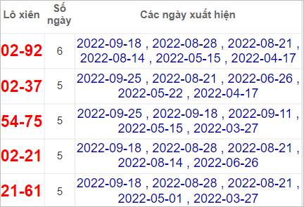 Bảng thống kê những con số thường xuyên xuất hiện gần đây