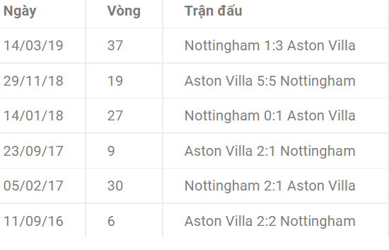 Lịch sử đối đầu của Nottingham Forest vs Aston Villa