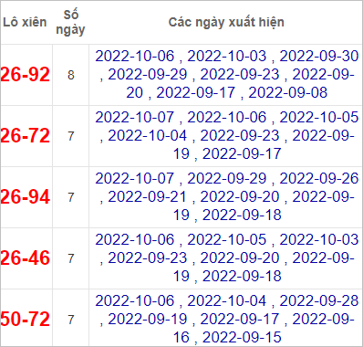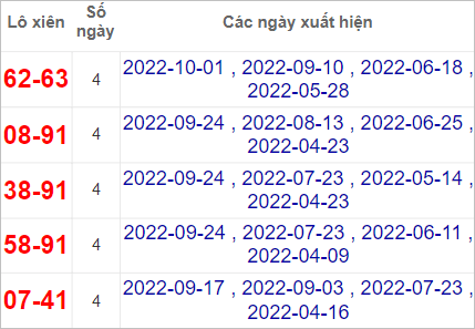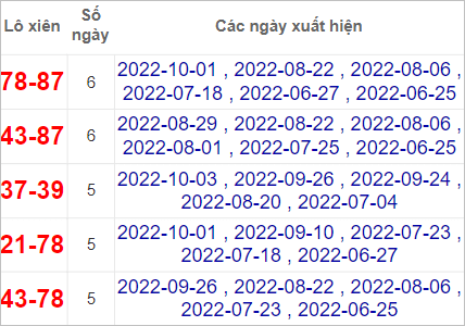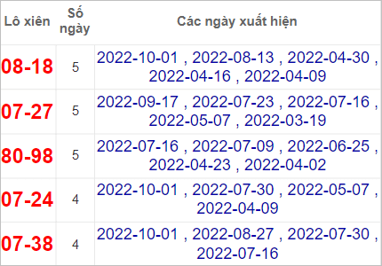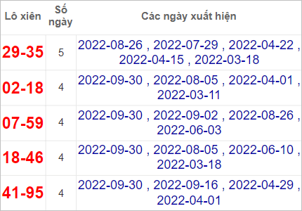 Bảng thống kê những con số thường xuyên xuất hiện gần đây