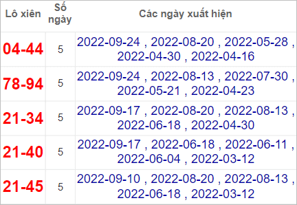 Bảng thống kê những cặp số lâu không xuất hiện nhất