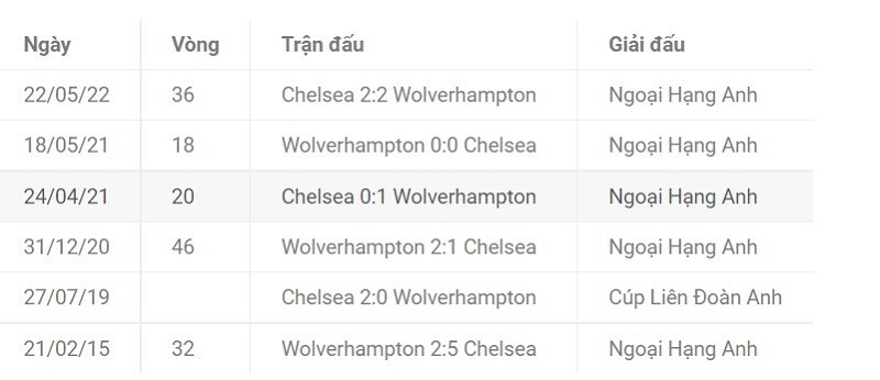 Lịch sử đối đầu của Chelsea vs Wolverhampton