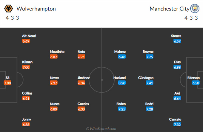 • Hiệp 1: Manchester City 2 – 0 Wolverhampton