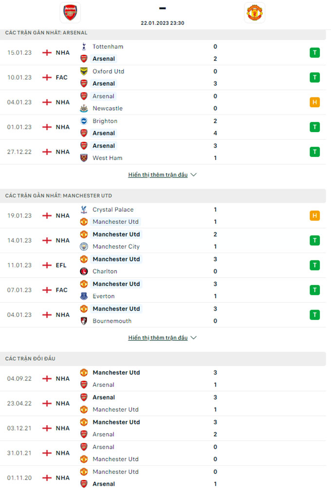 Trận gần nhất tiếp đón Man United trên sân nhà tại Ngoại hạng Anh là ở cuối mùa giải trước, Arsenal có chiến thắng tưng bừng 3-1. Tuy nhiên, sẽ không dễ để Pháo thủ có thể nghĩ đến việc tái hiện thành tích này, khi mà Quỷ đỏ thành Manchester đang thi đấu rất tiến bộ dưới triều đại của Erik ten Hag. Kịch bản về một trận cầu bất phân thắng bại khả năng sẽ xuất hiện.