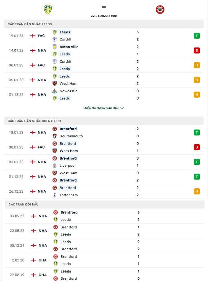 Về mặt thống kê, Leeds đã hòa 3/5 trận gần nhất trên mọi đấu trường. Trong khi đó, Brentford có phong độ khá tốt khi thắng 3, hòa 1 và thua 1 trong 5 trận gần nhất trên mọi đấu trường.