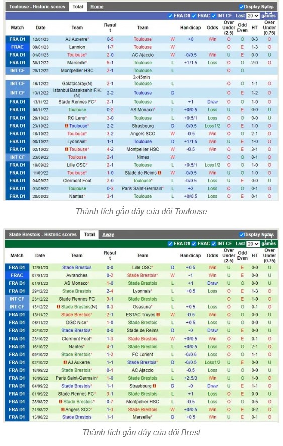 Toulouse có phong độ khởi sắc hơn hẳn so với đối thủ khi toàn thắng 3 trận trong năm mới, gồm 2 vòng tại Ligue 1. Điều đó là vô cùng lạc quan nếu biết là cuối năm 2022, Toulouse đã để thua 4 vòng liên tiếp. Đồng thời, nếu tính riêng thành tích sân nhà thì Toulouse đáng để ca ngợi. Trong 6 vòng đấu sân nhà gần đây, Toulouse đã thắng kép 4 trận tức là vừa thắng tỷ số, vừa thắng tỷ lệ châu Á.