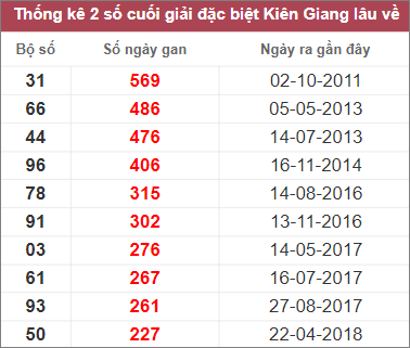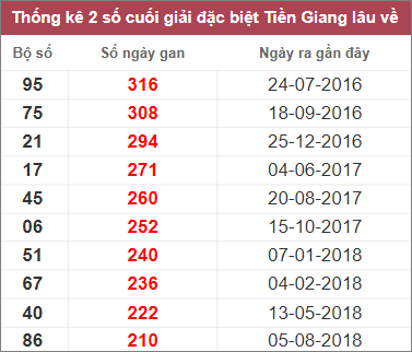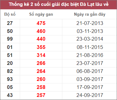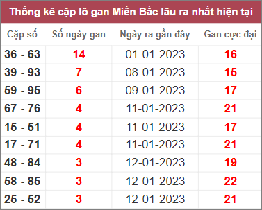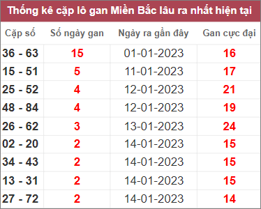 Bảng thống kê những cặp số lâu không xuất hiện nhất