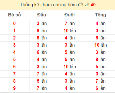Thống kê chạm đặc biệt ngày mai khi hôm nay về 40