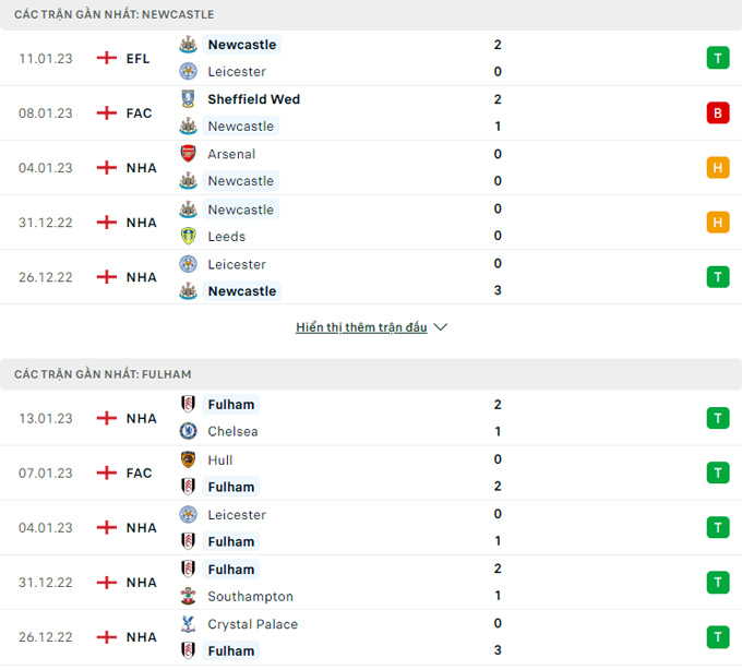 • Cả trận: Newcastle United 1 – 1 Fulham