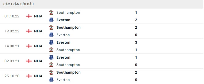 Lịch sử đối đầu của Everton vs Southampton