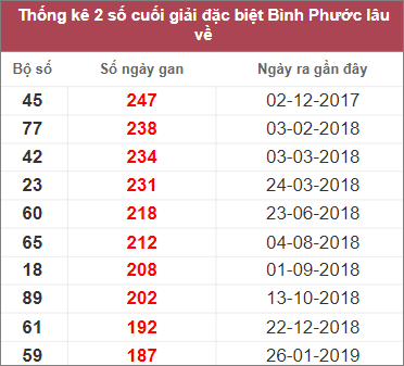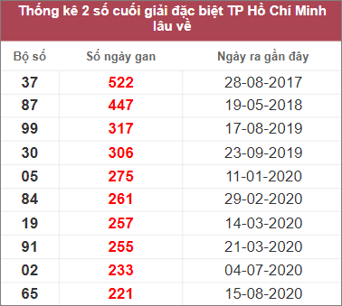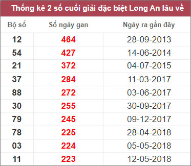 Bảng thống kê những cặp số lâu không xuất hiện nhất