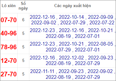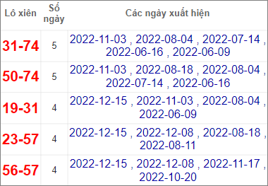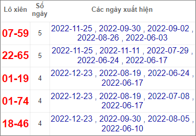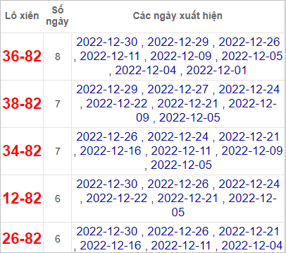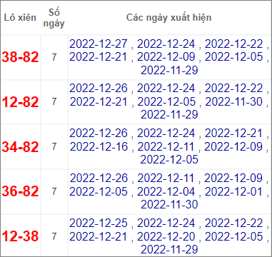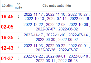 Bảng thống kê những con số thường xuyên xuất hiện gần đây
