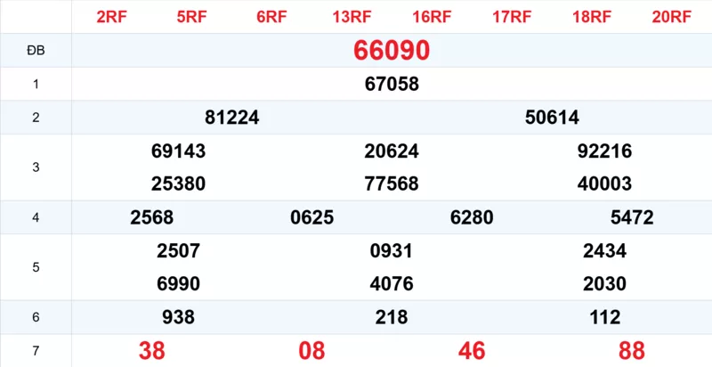 Dựa vào mô hình cầu tam giác, cầu đan chéo dài ngày cùng thống kê chu kỳ theo biên độ nổ, RIK88 chọn ra dàn số sau để gia tăng xác suất trúng.