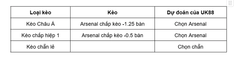 Tỷ lệ kèo hiệp 1: Arsenal chấp kèo -0.5 bàn. Lựa chọn: Arsenal.