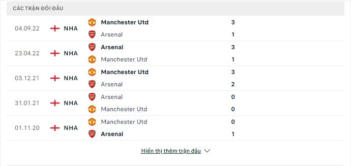 Lịch sử đối đầu của Arsenal vs Manchester United
