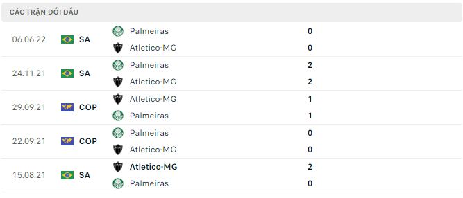 Lịch sử thi đấu của Atletico-MG vs Palmeiras