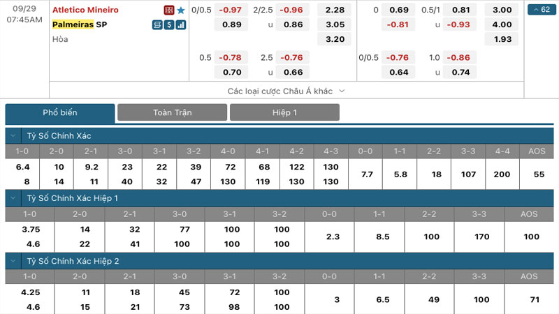 - Hiệp 1: Atletico-MG 0 – 0 Palmeiras