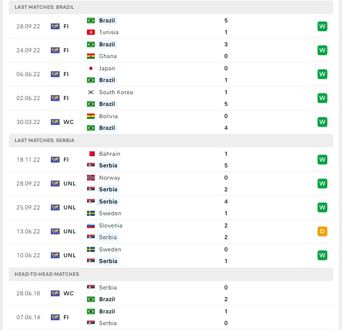 Lịch sử đối đầu của Brazil vs Serbia