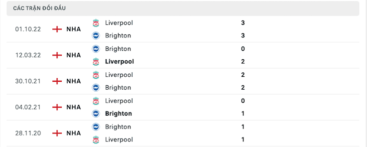 Lịch sử đối đầu đang là lợi thế cân bằng dành cho cả 2 đội. Thống kê ở 5 lần gặp nhau gần nhất cho thấy sự đáng sợ của Brighton khi Chim mòng biển mang về 1 chiến thắng 1 trận thua và 3 trận hoà, hai đội hòa nhau 2 lần và The Kop có tới 7 lần ca khúc khải hoàn. Trong 4 lần gần nhất hành quân tới sân Amex, Liverpool cũng có thành tích bất bại với 1 trận hòa cùng 3 chiến thắng. Ở lần tái đấu này giới chuyên môn cho rằng tình hình đội chủ sân Brighton vẫn có thể làm nên chuyện.