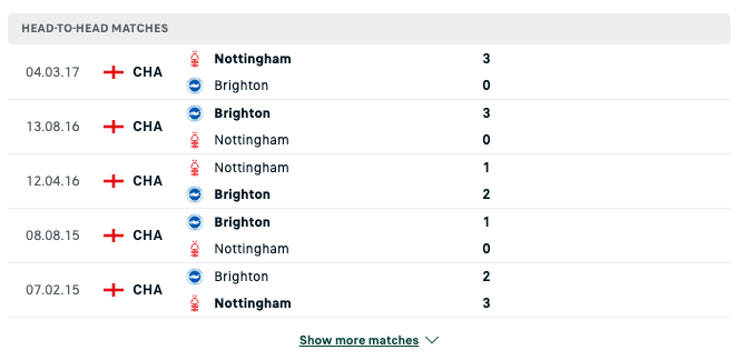 Theo thống kê trong 5 trận đấu 2 đội đụng độ với nhau gần đây nhất thì đội chủ nhà Brighton vẫn đang chiếm ưu thế hơn với 3 chiến thắng và 2 trận thua. Brighton đang là đội bóng nắm nhiều lợi thế hơn trước cuộc đối đầu này. Bầy hải âu được chơi trên sân nhà cùng một vị trí cao hơn trên bảng xếp hạng và bên cạnh đó còn là sự kinh nghiệm hơn tại đấu trường Premier League. Brighton đang chơi không tồi khi có được vị trí thứ 7 trên BXH. Chỉ phải gặp Nottingham Forest đứng cuối BXH vừa thua 6/7 trận gần nhất, nhiều khả năng họ sẽ kiếm trọn 3 điểm trên sân nhà.