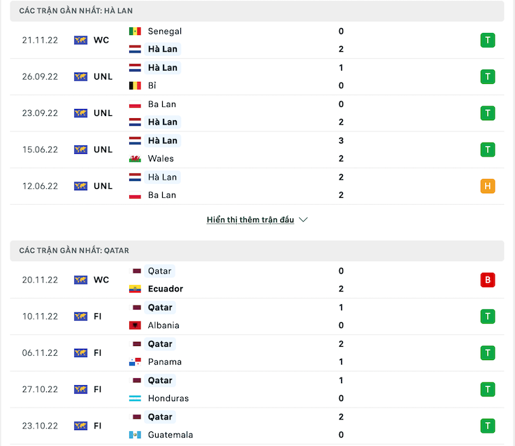 - Cả trận: Hà Lan 3 – 1 Qatar