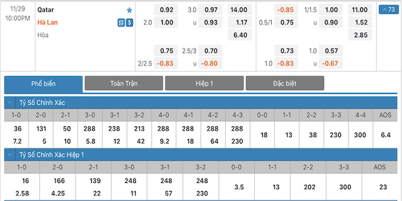 Tỷ lệ kèo giữa Hà Lan vs Qatar