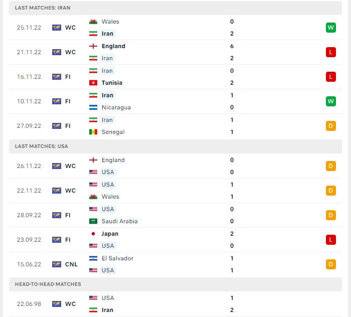 Thống kê cho thấy Iran đang là đội có lợi thế hơn khi họ đã dành chiến thắng trước Mỹ ở lần gặp mặt trước đó. Cả Mỹ và Iran đều không có thiếu vắng nào đáng tiếc nào về mặt lực lượng và sẽ ra sân với những cái tên chất lượng nhất trong đội hình. Tất nhiên không đội nào muốn mất điểm ở màn so tài này, một trận đấu hấp dẫn và quyết liệt sẽ được tạo ra. Mỹ sẽ không ngần ngại dâng cao nhằm tìm kiếm bàn thắng bởi họ không còn đường lùi ở trận đấu này. Trong khi đó, Iran không có gì phải vội vàng họ sẽ chơi chậm chắc chờ sai lầm từ đối thủ.