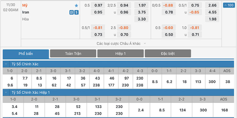 Tỷ lệ kèo giữa Iran vs Mỹ