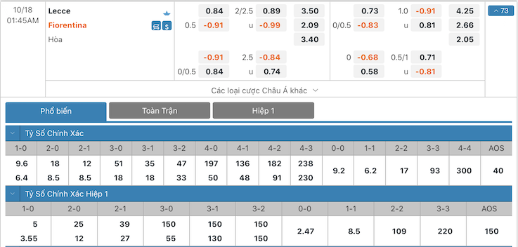 Tỷ lệ kèo giữa Lecce vs Fiorentina