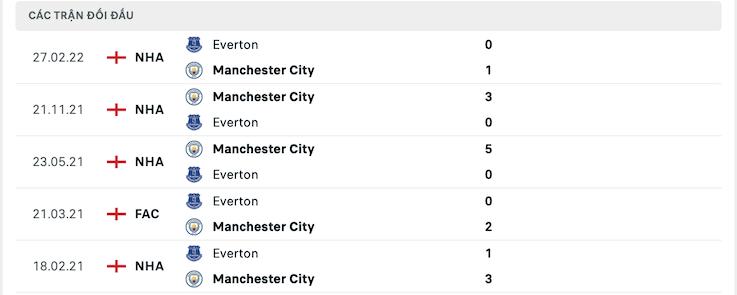 Không chỉ có thực lực nhỉnh hơn mà Manchester City cũng hoàn toàn áp đảo Everton về thành tích đối đầu trong quá khứ. Bằng chứng ở 10 lần so tài gần nhất, các nhà ĐKVĐ đang có thành tích toàn thắng. Cộng với lợi thế sân nhà nên không bất ngờ nếu như đoàn quân của HLV Pep Guardiola có 3 điểm để tiếp tục phả hơi nóng vào gáy đội dẫn đầu Arsenal.
