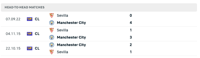 Lịch sử đối đầu của Manchester City vs Sevilla