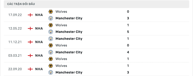 Thống kê trong 5 lần đối đầu gần đây nhất giữa 2 đội thì Manchester City đang chiếm ưu thế tuyệt đối với 5 chiến thắng. Dù hứa hẹn vấp phải sự chống trả quyết liệt đến từ Wolves nhưng tin rằng Man City sẽ thể hiện được đẳng cấp của nhà ĐKVĐ để giành chiến thắng chung cuộc, qua đó tiếp tục bám đuổi Arsenal. Về phần đội khách, thất bại sẽ khiến Wolves phải đối mặt nguy cơ trở lại nhóm cầm đèn đỏ.