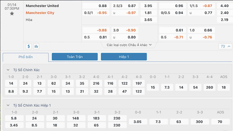 Tỷ lệ kèo giữa Manchester Utd vs Manchester City