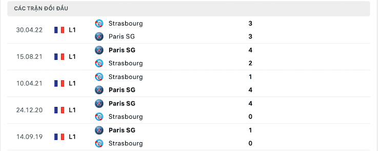 Lịch sử đối đầu của Paris SG vs Strasbourg