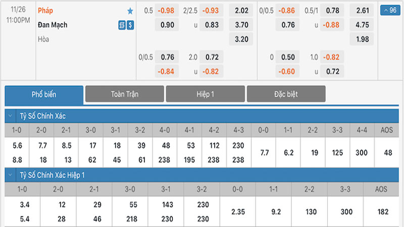 Tỷ lệ kèo giữa Pháp vs Đan Mạch