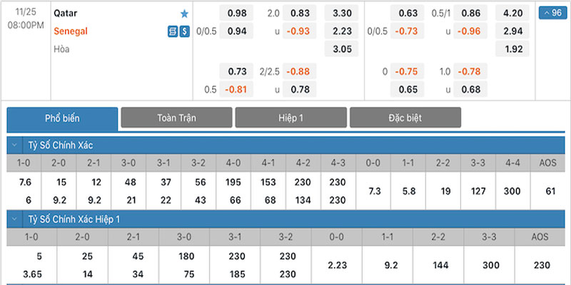 Tỷ lệ kèo giữa Qatar vs Senegal