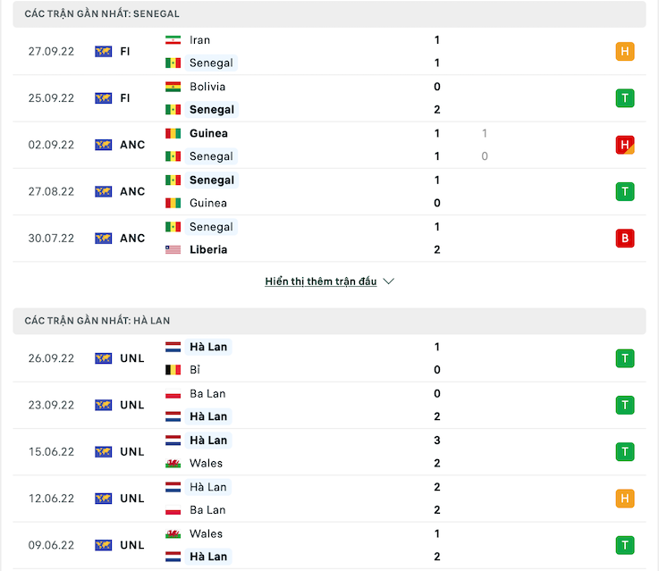 • Cả trận: Senegal 0 – 3 Hà Lan